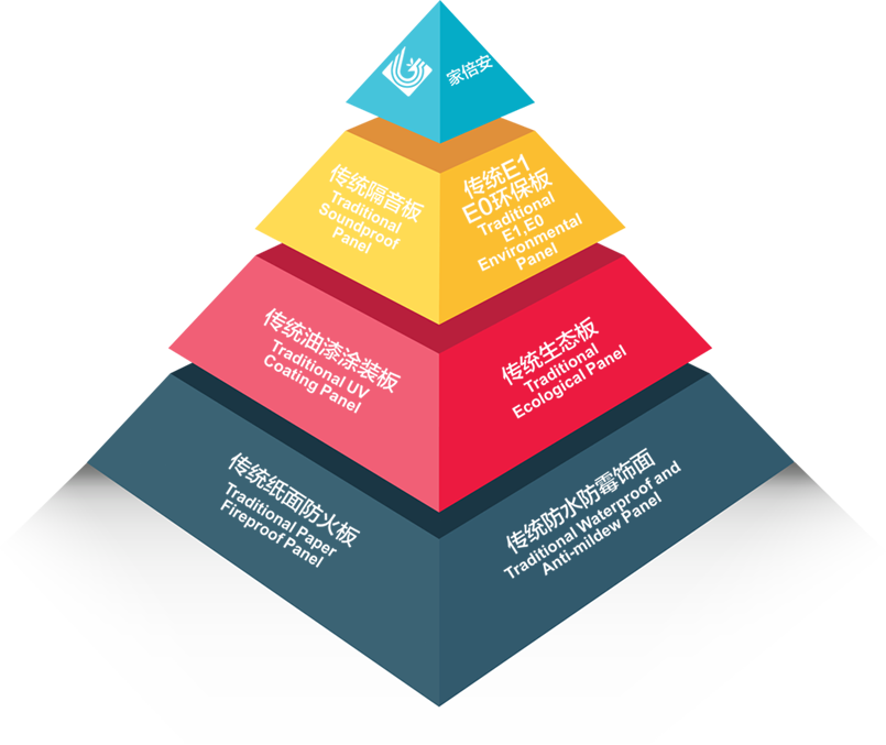 • “家倍安”使用高阻隔金屬鋁箔和高滲、超耐磨納米材料,經(jīng)過高溫高壓獨特的工藝方法處理,飾面木質(zhì)纖維結(jié)構(gòu)更加縝密,隔音、降噪,導熱系數(shù)低,防火等級高,達到國家防火材料防火標準A2級。